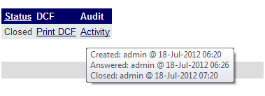 d) By hovering the mouse over the “Audit” field “Activity” link, a popup window will show activity for that query. (Queries must be closed for this to be visible.) See Figure 3 below.