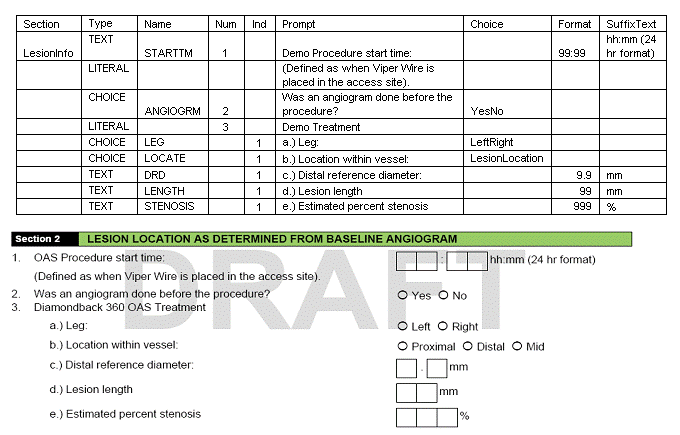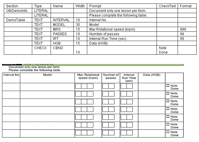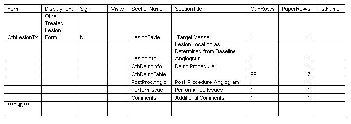 This is an example of Other Treated Lesion Form. This form is complex and uses table, choices and much more.