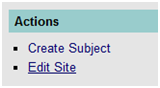 The list of possible actions (as shown in Figure 2 above) shows a site that is in an “Active” status, thus the “Create Subject” link is enabled (underlined).