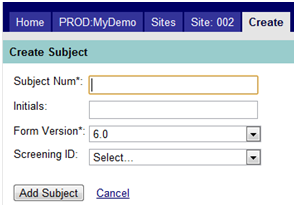 When a site has not yet been activated, the “Create Subject” link is not enabled (not underlined) as in Figure 3 below.