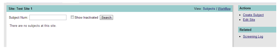 If there are no subjects yet entered, the screen will look like Figure 2 below. Action links are in the side bar as shown.