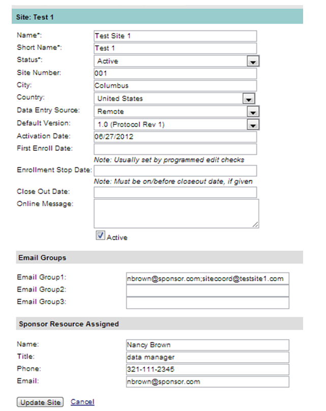 There are additional fields in the Edit Site screen that are available when the site is created. See Figure 3 below.