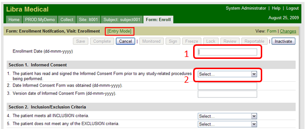 Drop Down Lists (as indicated by '2' in above image) are completed by scrolling through possible selections and then clicking desired option.