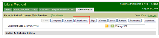 Figure 3: Marking a CRF as Monitored