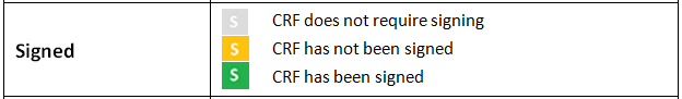 There are three possible form flags to indicate the signature status of a CRF. See the figure below and the section Signing eCRFs for additional information.