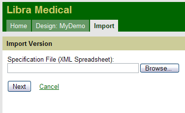 Import Version will allow you to upload an XML spreadsheet that will populate the study with a number of design elements.