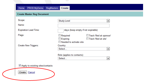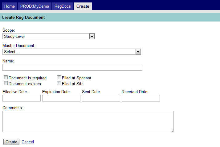Figure 9: Create a Regulatory Document