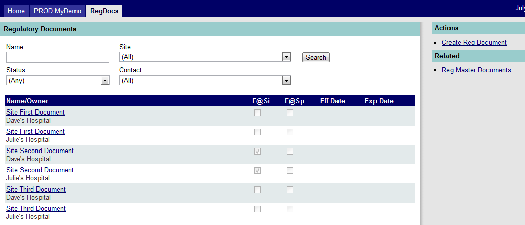 - Flags. The only flags carried over from the master document are “Required” and “Expiring”. The user must verify that the document is actually on file with the Sponsor and Site and if so, check the appropriate box(es).