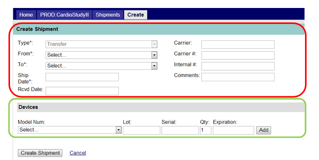 Step 3: Complete the following fields in the Devices section for each product in this transfer shipment, outlined in green in Figure 2 above.