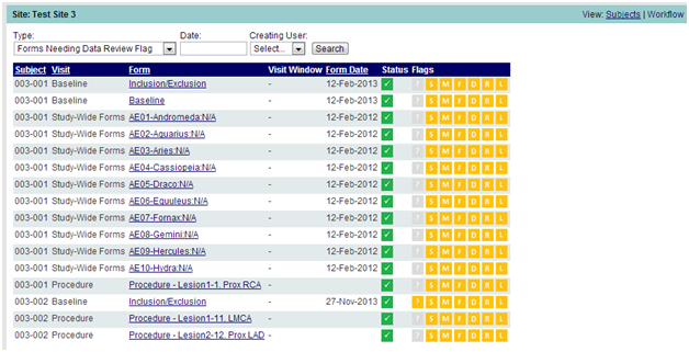 Example: Forms Needing Data Review Flag
