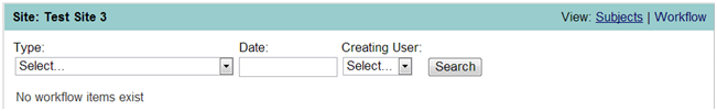 - From the Site Landing Page, click on “Workflow” as shown in Figure 1 below. The screen shown in the Figure 2 below appears.
